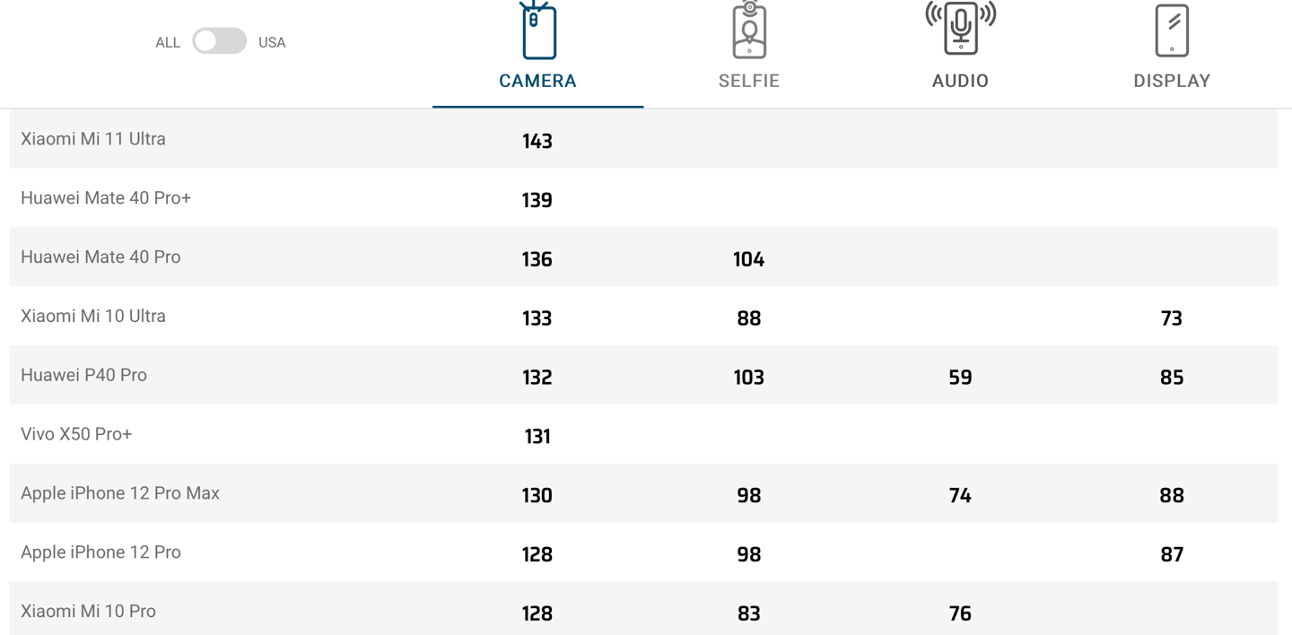 2021年04月19日 | 小米 11 DXOMARK 相机评分 120 分,没进前 20