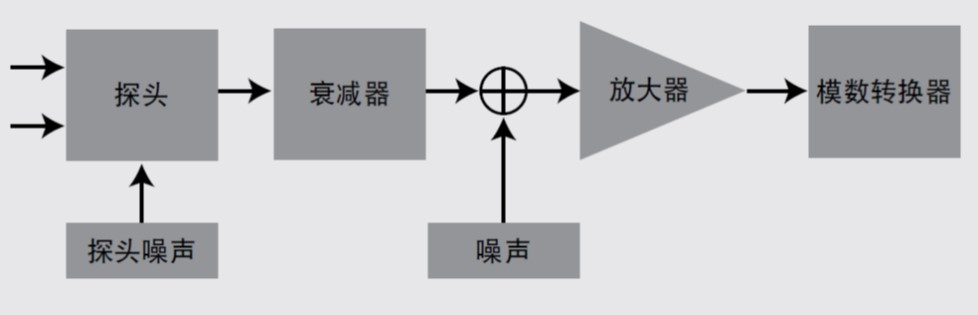 参见下面的方框图。示波器和探头系统中的噪声主要来自两个方面。示波器中的输入放大器和缓冲区电路会产生一些噪声,有源探头的探头放大器也会产生噪声。