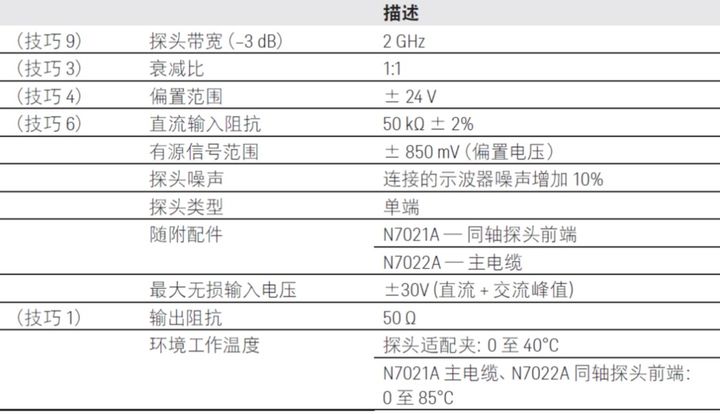 注:提供偏置的大多数有源探头也具有超过 1:1 的衰减比,这与降低示波器测量系统噪声的目标相悖。有一些探头(例如 Keysight N7020A 电源探头)能够同时提供偏置功能和 1:1 衰减比。N7020A 的偏置范围为 ±24 V。