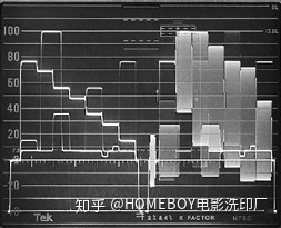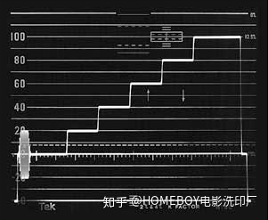 在该波形图,我们看到一个简单的“阶梯”的测试信号从左⾄至右有电平为0,20,40,60,80,和100 IRE。这个信号实际是这样的: