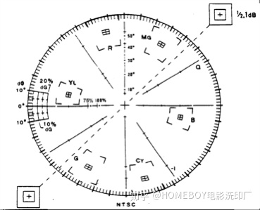 这是SMPTE COLOR BAR在矢量示波器上的正常显示。