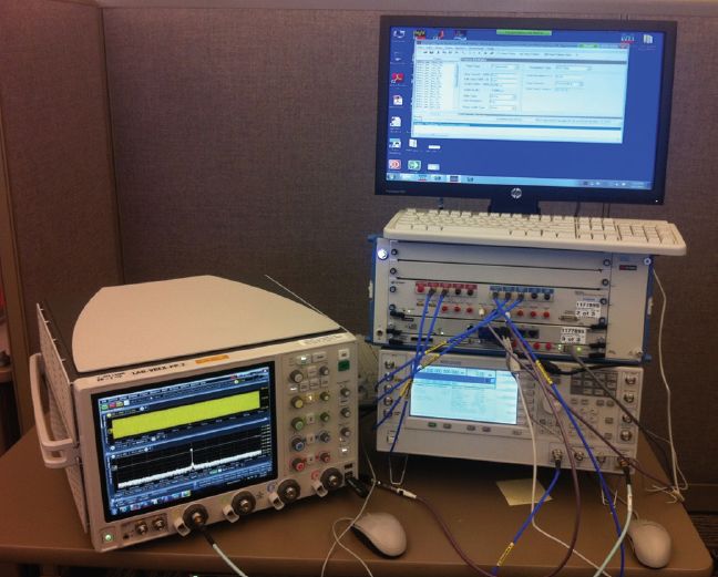 图 1. 由 M8190A 任意波形发生器控制的 S 系列 8 GHz 示波器,显示界面为使用 89600 矢量信号分析(VSA)软件处理的捕获信号。