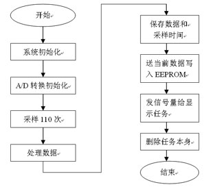 在本测试中要用到两个行为同步,第一个是采样的数据的显示,测试要求把当前采样的数据通过LCD液晶屏上显示出来,所以要在数据显示任务中要等待采样任务完毕的信号量,当采样完毕后,发送信号量,把当前采样的结果显示出来。第二是查询历史记录,用户要查询历史记录时,才把记录显示出来,所以在查询历史记录任务里设置等待查询信号。任务之间相互配合和协调,才能得到预定的效果,这样可以实现任务的同步。