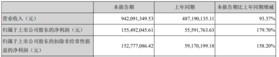集微网报道,4月23日,扬杰科技发布2021年第一季度报告称,公司实现营业收入94,209.13万元,较上年同期上升93.37%;实现营业利润为19,157.84万元,较上年同期上升190.24%;归属于上市公司股东的净利润15,549.20万元,较去年同期179.70%。