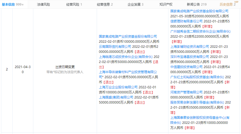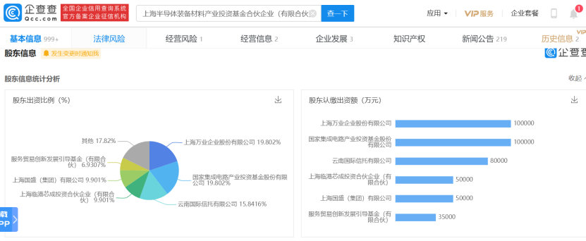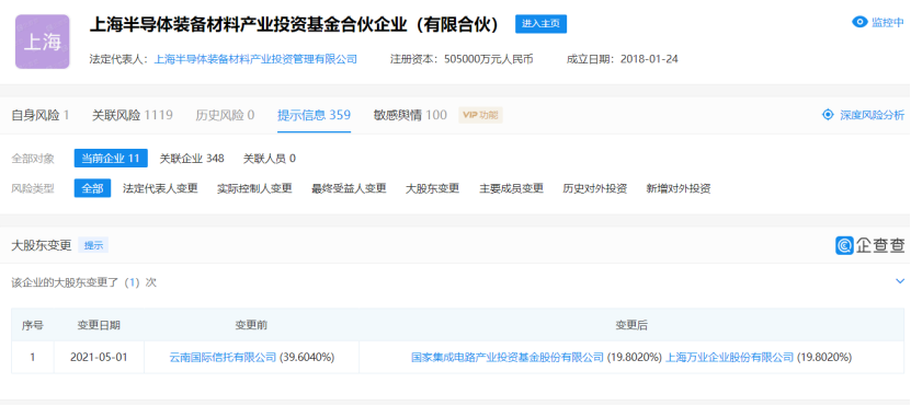 企查查显示,4月30日,上海半导体装备材料产业投资基金合伙企业(有限合伙)发生多项变更,包括投资人(股权)、出资比例变更等。