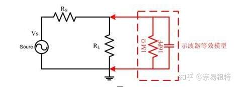 而引入了示波器后,对于DC电路和低频电路而言,其负载端的阻值其实就是(RL//1MΩ),因此如果我们的负载如果相比与1M比较小,那么基本可不不用考虑示波器的接入影响。所以我们一般测试数字IO引脚等都会选择这个档位。那么为什么会有50欧姆档存在呢,那是因为50欧姆是我们射频电路中常用的阻抗值,很多时候我们要对射频信号进行检波时,为了满足射频电路的匹配要求,所以需要我们设置示波器的输入阻抗为50欧姆(关于射频电路的知识,我也会在后面的章节慢慢介绍,毕竟是我的老本行了)已达到和测试电路匹配的效果。