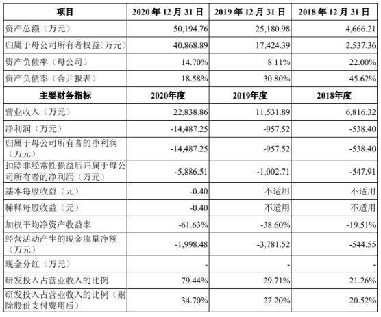 2018 年度、2019 年度和 2020 年度,发行人净利润分别为-538.40 万元、-957.52 万元和-14,487.25 万元,尚未实现盈利;截至 2020 年末,发行人未分配利润金额为-7,252.47万元,存在累计未弥补亏损。