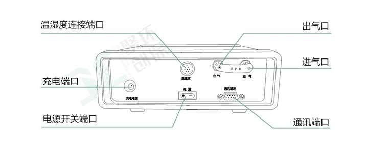 上图是该款仪器的正面照和背面照,正面由操控键和液晶屏组成,背面由开关,数据,检测口,电源,温湿度接口组成。