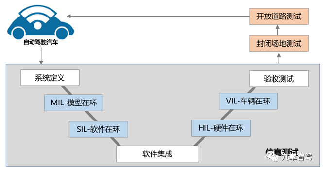 自动驾驶汽车商用化需经历的三个测试阶段:仿真测试、封闭场地测试、开放道路测试。