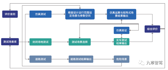 3)仿真测试和封闭场地测试的最终结果要进行综合评价,基于评价结果不断地去完善评价准则和测试场景库。
