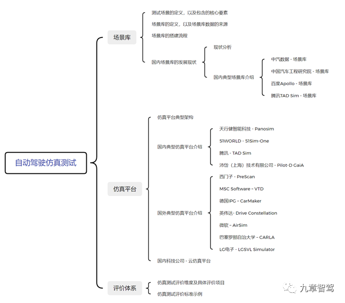 自动驾驶仿真测试的重要构成:场景库、仿真平台、评价体系;其中,场景库是基础,仿真平台是核心,评价体系是关键;三者紧密耦合,相互促进:场景库的建设需要仿真平台和评价体系作为指导,仿真平台的发展进化需要场景库和评价体系作为支撑,而评价体系的建立和完善也需要以现有的场景库和仿真平台作为参考基础;接下来笔者将从场景库、仿真平台、评价体系这三个重要方面依次展开来介绍。
