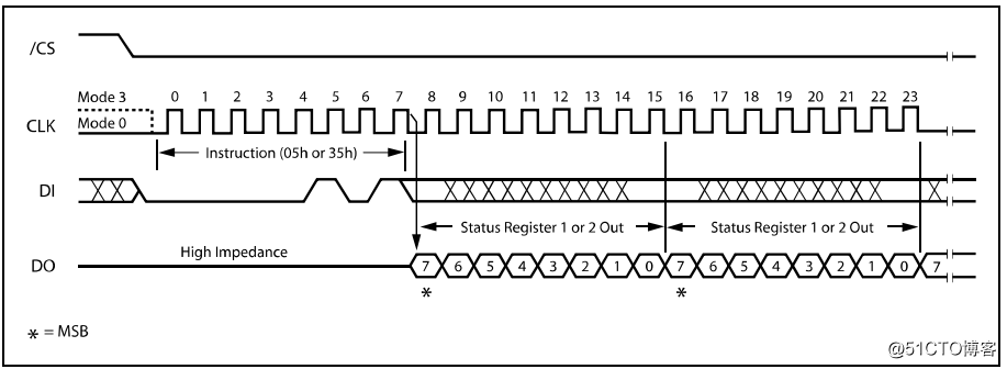 当 Flash 内部在执行命令时,不能再执行 MCU 发来的命令,但是 MCU 可以一直读取状态寄存器,这下就很好办了,MCU可以一直读取,然后判断Flash是否忙完: