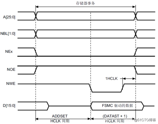 对于异步模式,FSMC主要设置三个时序参数: