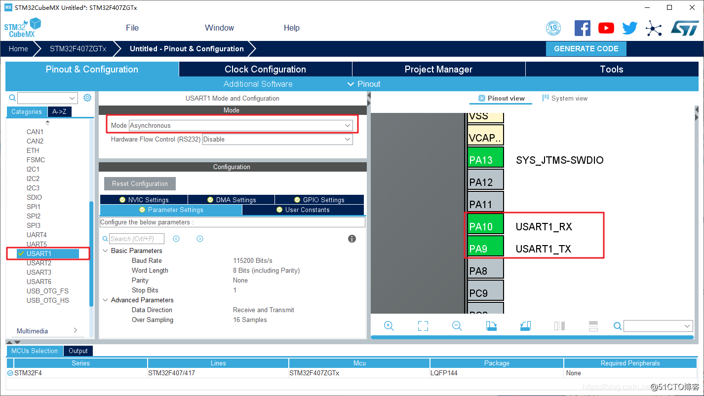 接下来开始配置USART1: