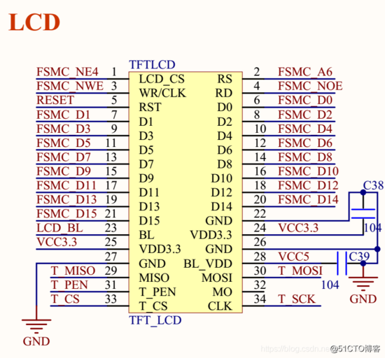 开发板上 TFT-LCD 的原理图如下: