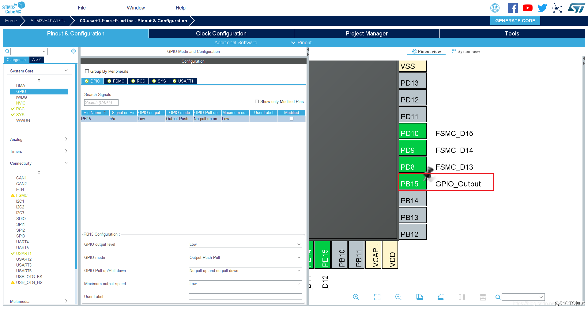 LCD D0-D15:使用了16bit:FSMC D0 - FSMC D15;