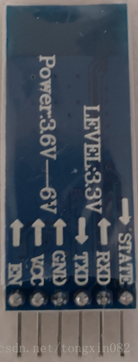 蓝牙串口模块的功能是串口协议和蓝牙协议之间的相互转换,在单片机上自己编写一套蓝牙驱动代码是非常复杂的,借助这个模块我们在编写单片机代码时只需要编写串口收发的代码即可,该模块得到串口数据后会转成蓝牙数据。对于APP它接收到的是蓝牙数据,开发APP时只需要编写蓝牙相关的代码,Android封装了蓝牙相关的API,所以开发起来简单。蓝牙串口模块的引脚图如下图所示,在这个设计中用到了四个引脚,VCC、GND接5V电源和地,蓝牙模块的TXD接单片机的RXD,RXD接TXD。