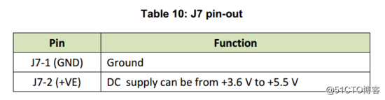 外部供电接口(J7)的引脚说明: