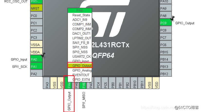因为选择了不使用硬件SPI外设控制片选引脚,所以需要手动配置片选引脚PA4: