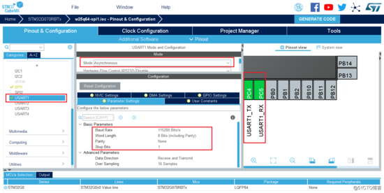 接下来开始配置USART1: