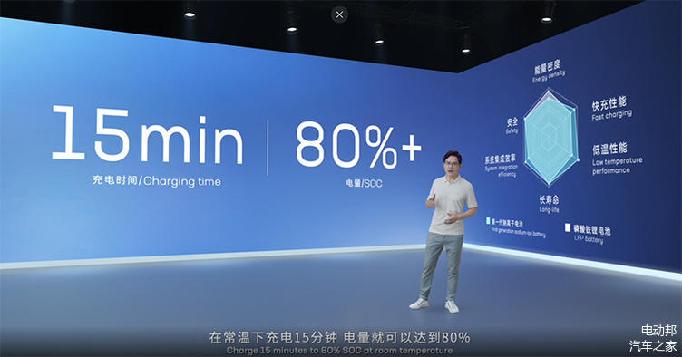 目前,宁德时代第一代钠离子电池可支持效率较高的快充,在常温下充电15分钟,电量就可以达到80%。