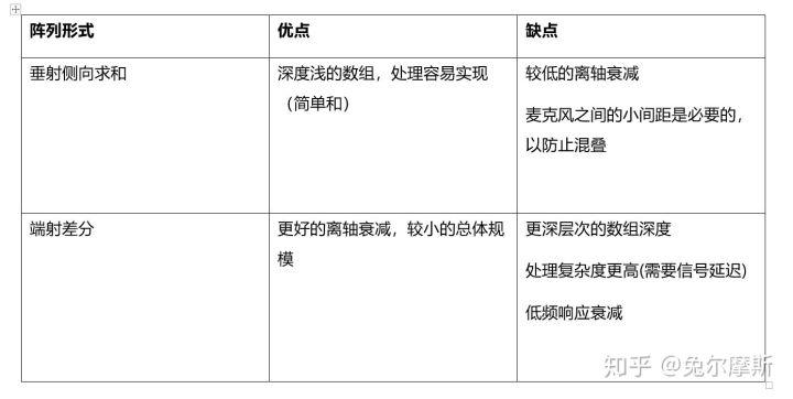 在单采样延迟(fS = 48khz)和7mm麦克风间距的端射差分阵列中,空值的频率约为24.5 kHz,如果采样延迟为6个采样,麦克风间距为84mm,混叠频率则为4.2 kHz。设计通常要求零频率介于这两个示例之间,这样空值频率就不会低到干扰人类语音带宽的程度,或者高到低频响应被高度衰减的程度。考虑到这些要求,通常选择两个麦克风之间的距离来匹配两个到四个样本之间的延迟。同样,这都是假设fS = 48khz。所有这些计算都与采样率成线性关系。