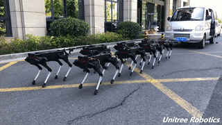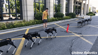 浙江大学四足仿生机器人“绝影”早已名声在外。 “绝影”靠电机驱动,最大负载20千克,最快行走速度为每小时6公里,续航时间2小时。它已经掌握了跑跳、爬梯子、在碎石子路上行走、自主蹲下再站起来等许多能力。