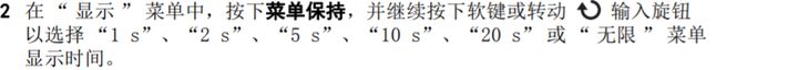 菜单显示时间是指在按下前面板键或软键后,菜单保留在屏幕上的时间。