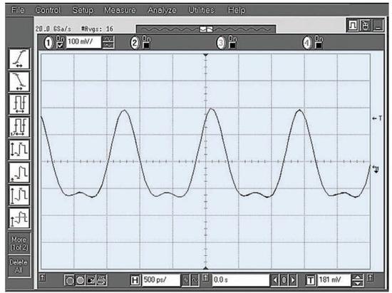 现在我们便知道了为何原始信号不是纯正弦波,因为它还包含第二个正弦分量,在这种情况下是二次谐波。既然如此,时域测量是否过时了呢?答案是否定的。时域测量能够更好的适用于某些测量场合,而且有些测量也只能在时域中进行。例如纯时域测量中所包括的脉冲上升和下降时间、过冲和振铃等。