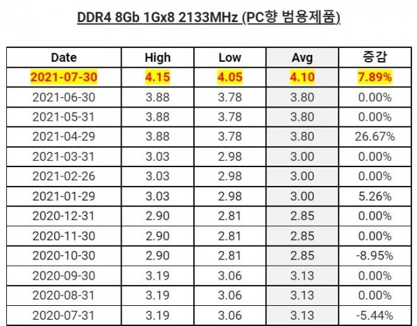 2021年08月01日 | 内存价格7月再涨!PC DRAM涨幅高达7%
