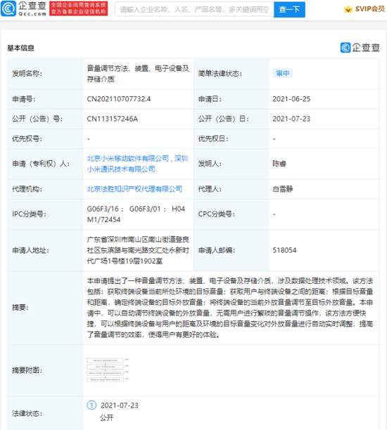 2021年08月02日 | 小米公开自动调节外放音量相关专利:无需用户进行调音量