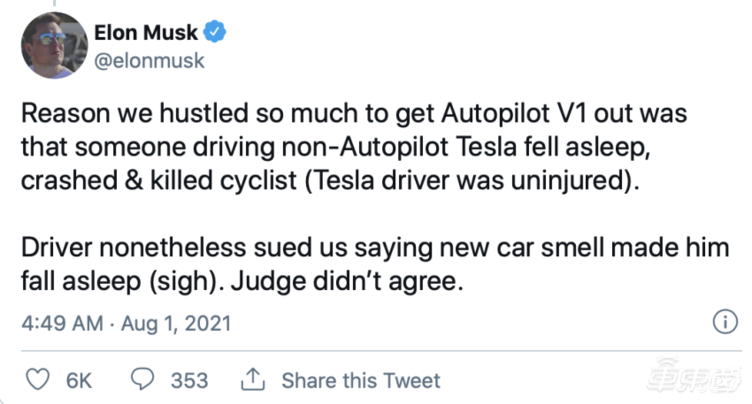 2021年08月03日 | 一场车祸引发的技术变革?马斯克推特回应为何研发Autopilot