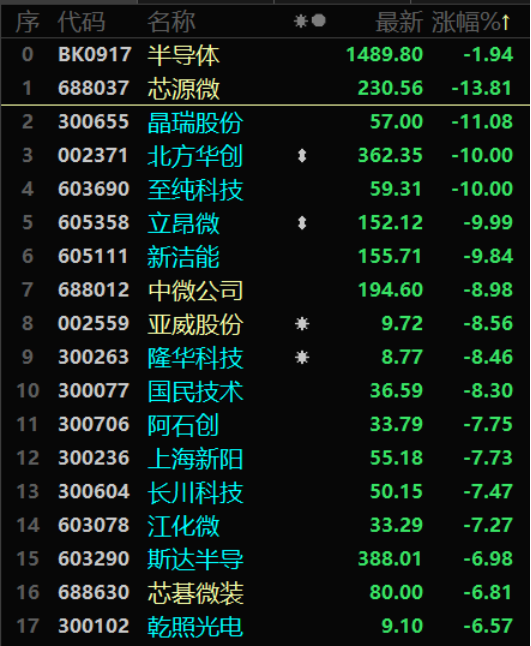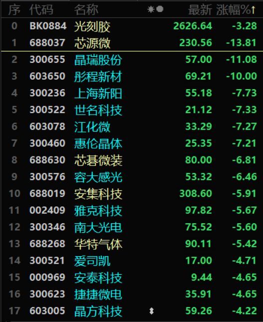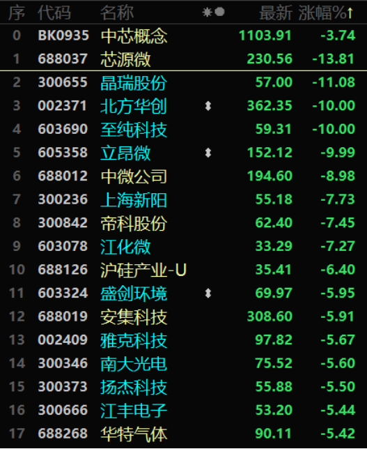 8月3日早盘,盘中跌幅一度超过10%的有芯源微、晶瑞股份、国民技术等,而盘中跌停的则有彤程新材、至纯科技、北方华创、立昂微等。