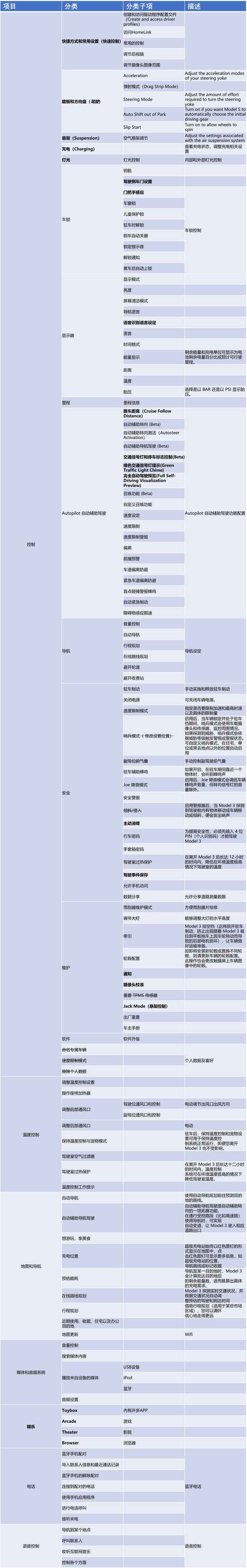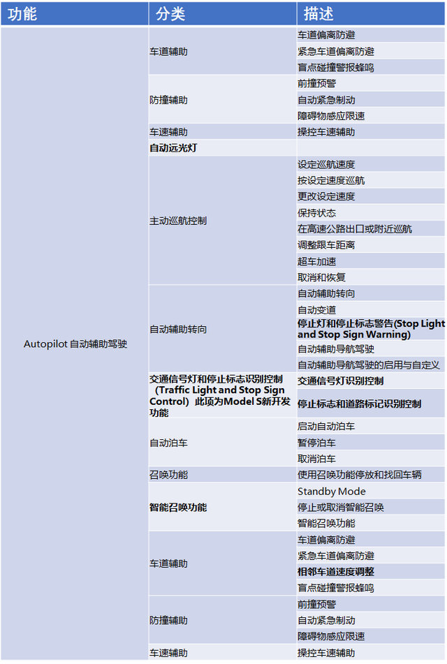 从Model S Plaid的User Manual里面可以把车机部分和Autopilot的基本功能做一个分类,如下图所示: