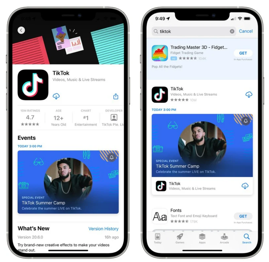IT之家获悉,苹果 App Store 活动事件仅限于 iOS 15 设备,因此 TikTok 夏令营活动不会显示在运行 iOS 14.7.1 的设备上。随着 iOS 15 发布的临近,活动事件会逐渐增多,当 iOS 15 正式版发布时,每个人都会有机会看到。