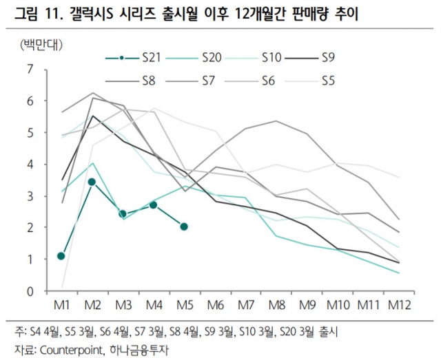 Businesspost.co.kr 的报告补充道,Galaxy S21 系列在今年前 6 个月的销量为 1360 万台,较去年同期的 Galaxy S20 系列下滑了 20% 。若与前年的 Galaxy S20 系列相比,Galaxy S21 的差距更是达到了 47% 。