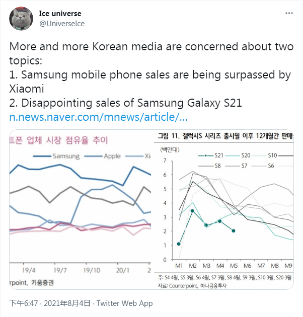 2021年08月06日 | Galaxy S21表现让人失望 三星旗舰机销量下滑明显