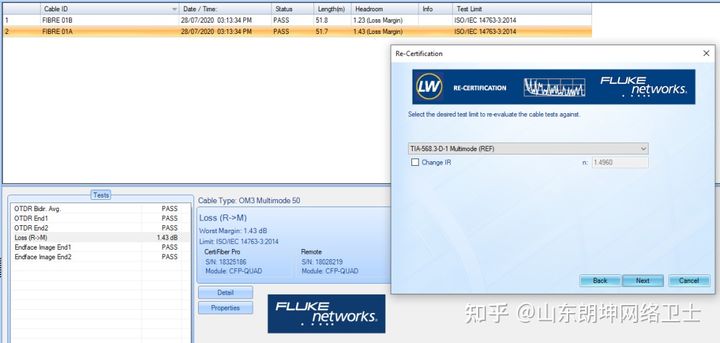光纤测试的结果可以被重新认证吗?许多已通过ISO/IEC 14763-3:2014光纤限值测试的报告,经常被要求根据ANSI/TIA-568.3-D-1对光纤进行测试。