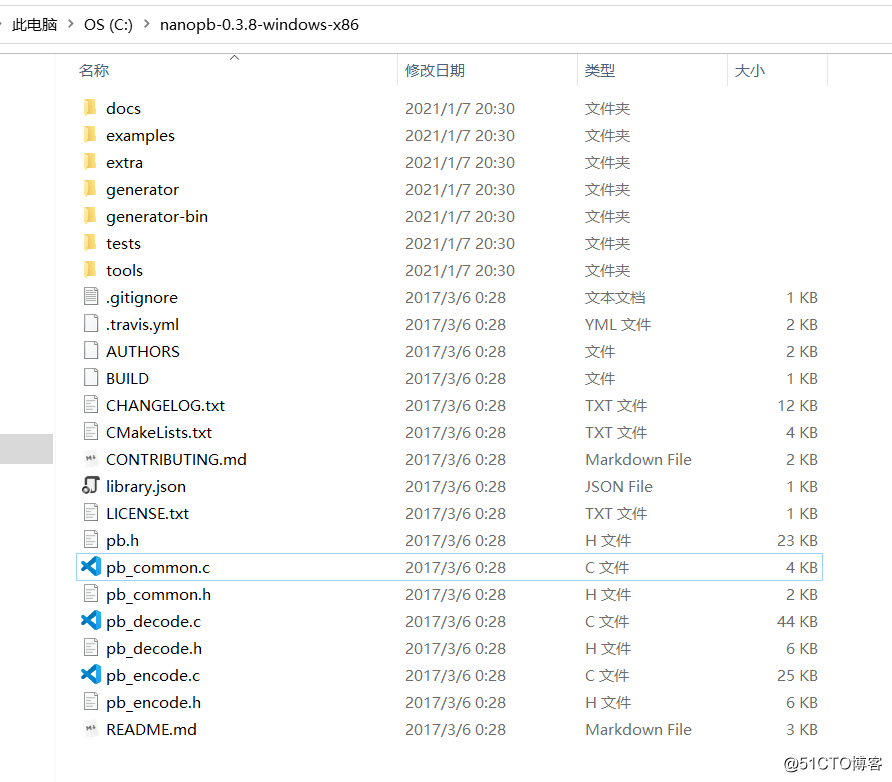 我这里使用nanopb-0.3.8-windows-x86,目录: