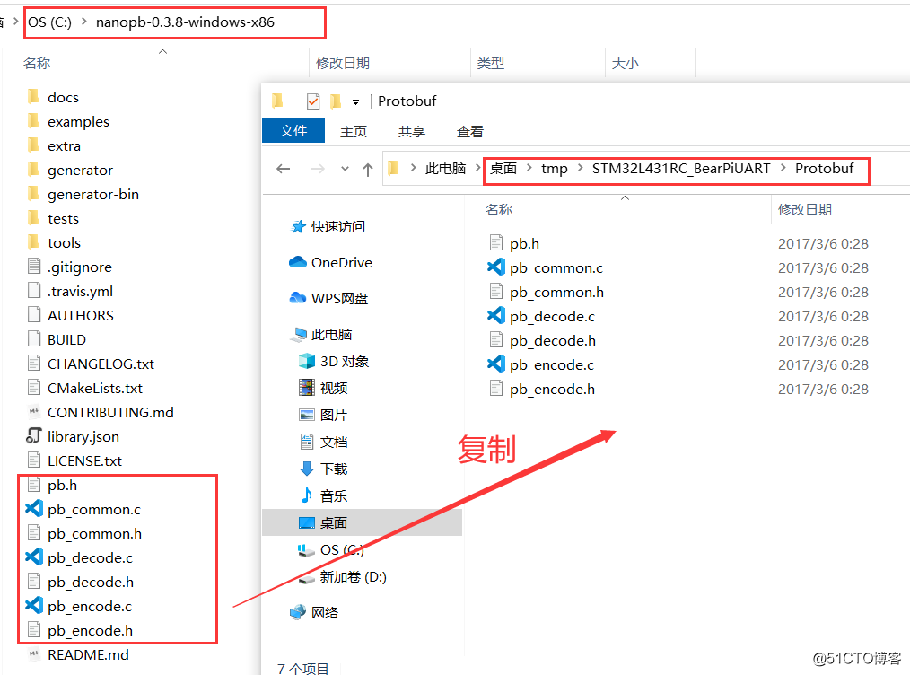 在工程目录下新建一个Protobuf文件夹,并把nanopb-0.3.8-windows-x86目录下如下7个文件