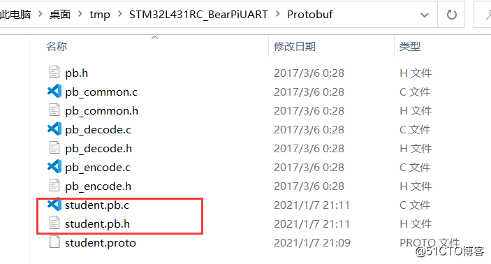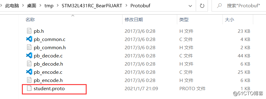 生成student.pb.c与student.pb.h文件: