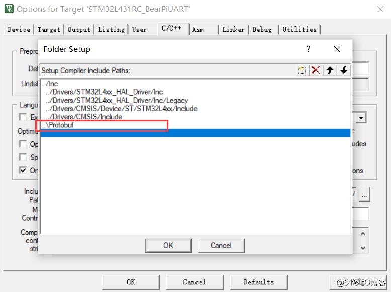 把Protobuf文件夹里的文件添加到mdk工程并增加头文件搜索路径: