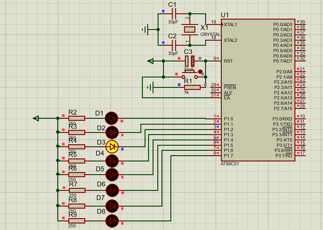 本设计旨在实现8个LED流水灯的设计。