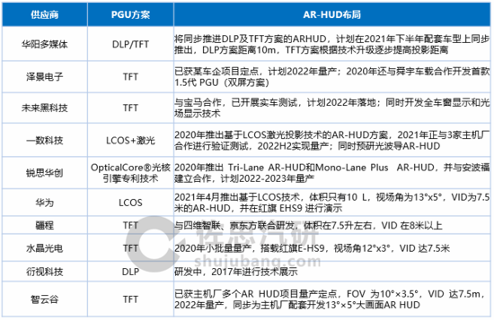 本土HUD供应商AR-HUD布局