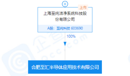 企查查显示,合肥至汇半导体应用技术有限公司成立于2019年,注册资本1000万元人民币,法定代表人为蒋渊。上海至纯洁净系统科技股份有限公司为该公司股东,持股比例100%。