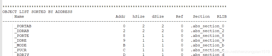 −OBJECT LIST SORTED BY ADDRESS(寄存器/全局变量/函数储存地址清单)