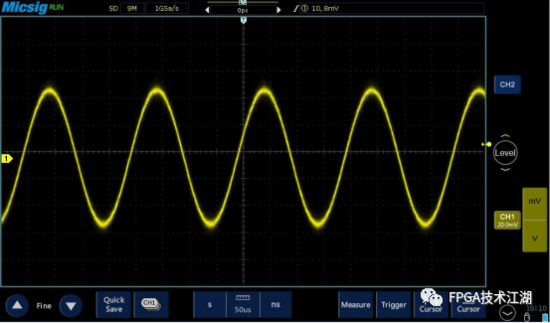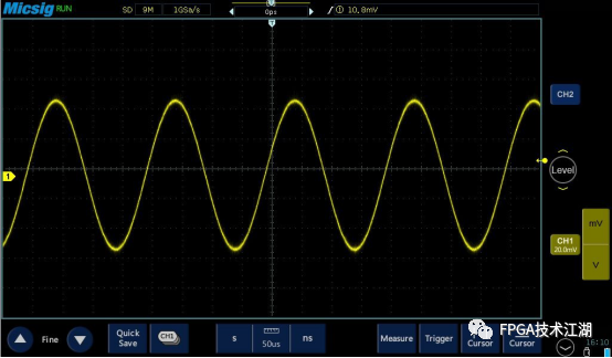 打开 20M 带宽限制后,信号中高频干扰成分被滤除,如下图:
