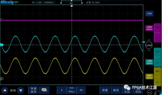 (2) 按下“Auto”(自动设置)键,得到相位差为 90°的两个正弦信号。