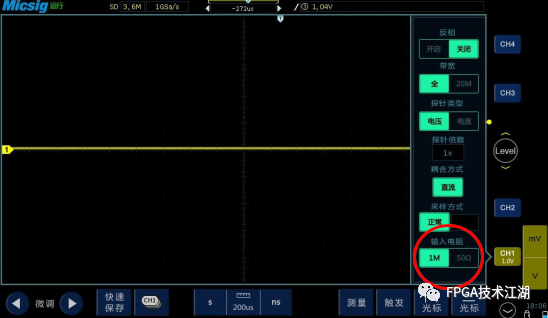 输入阻抗有高阻和 50 欧姆两种模式。在测量时需要与源或探头的阻抗相匹配。