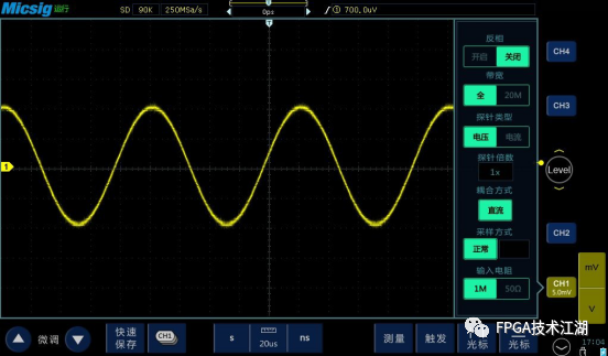 带宽限制通常是人为地将高带宽示波器限制在较低的带宽,以滤除高频信号。通常有全带宽、200M、20M、20K 等,视不同带宽的示波器而定。